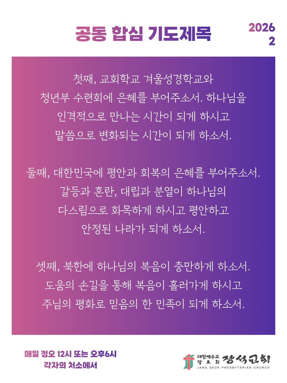 2026년 2월 공동 합심 기도제목