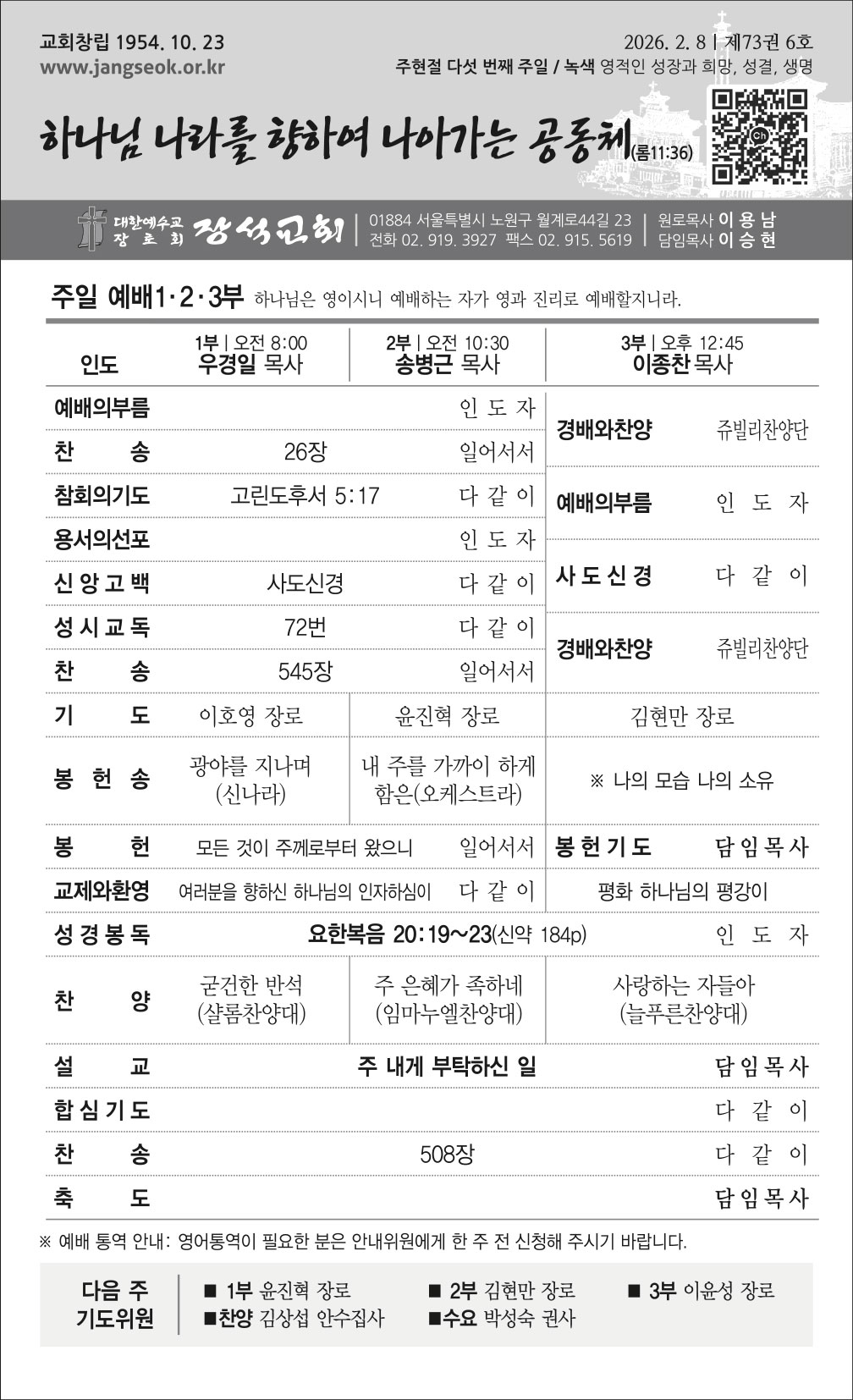 2026년 2월 셋째주(02.15) 교회 주보