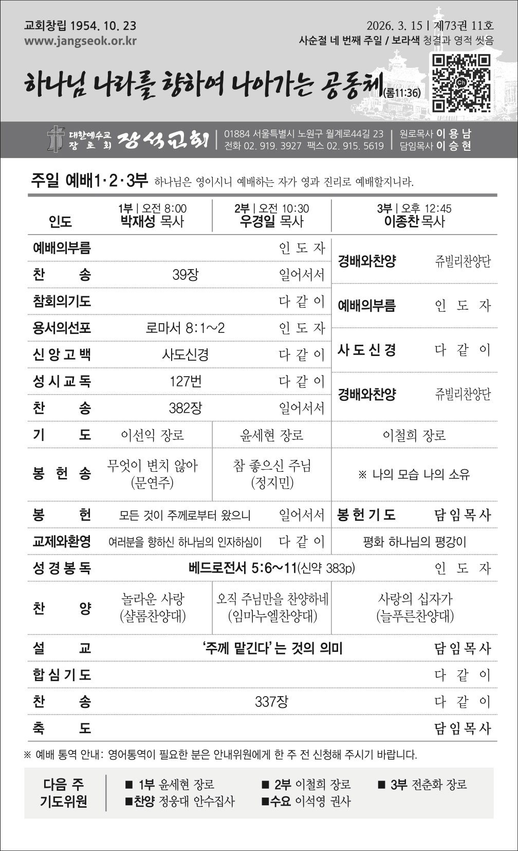 2026년 3월 셋째주(03.15) 교회 주보