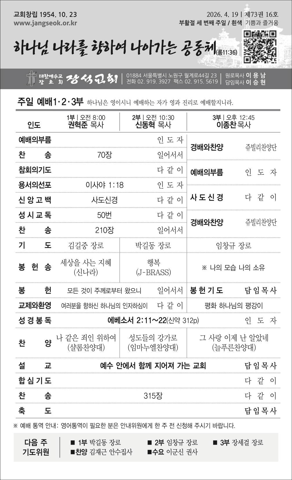 2026년 4월 셋째주(04.19) 교회 주보
