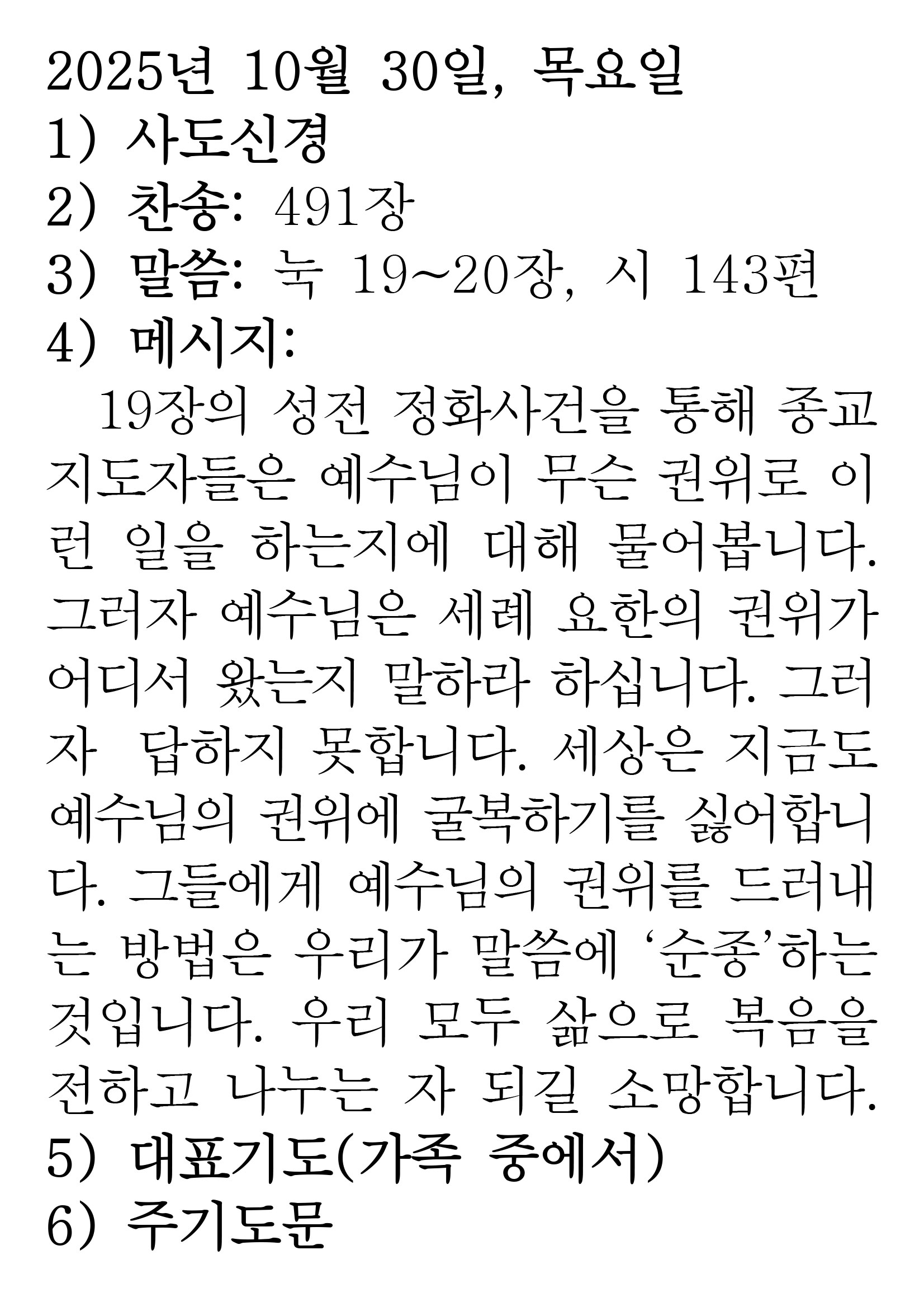 2025.10.30 (누가복음 19-20 시편 143편) 장석교회 0 2025.10.30 00:03 https://www.youtube.com/watch?v=5E2hkrjNDHU + 0