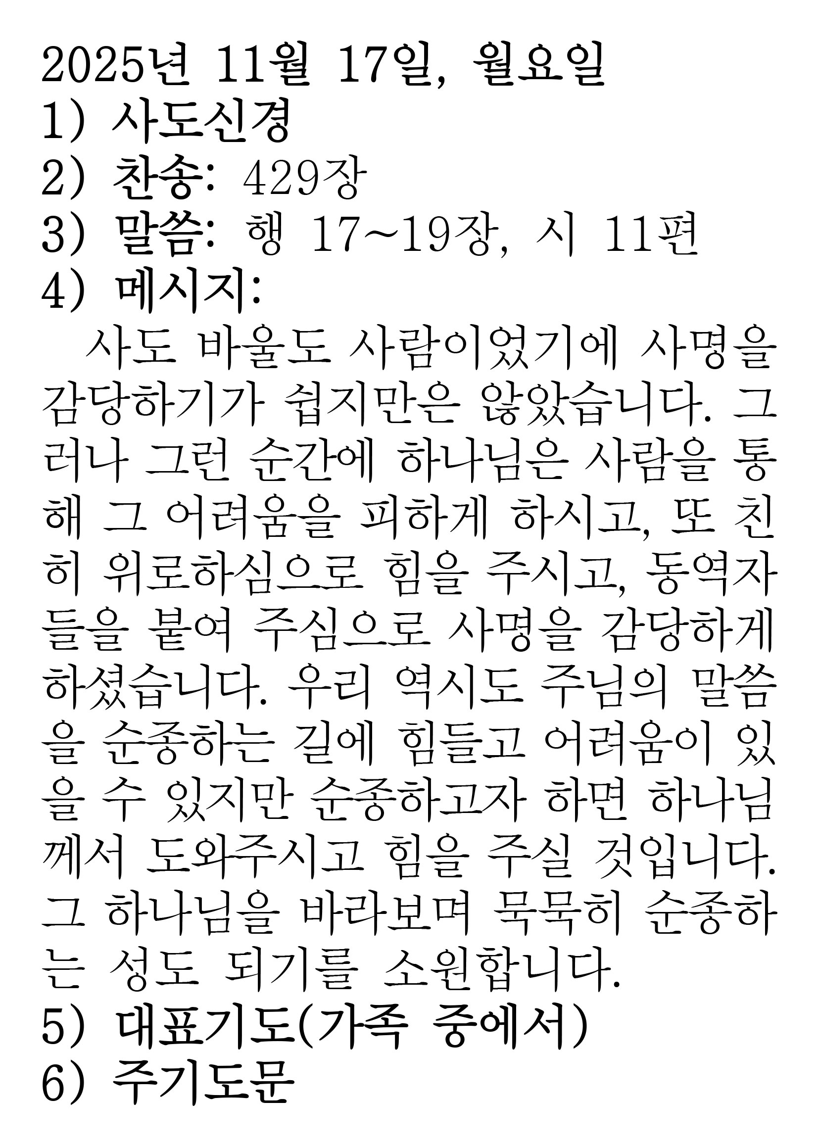 2025.11.17 (사도행전 17-19 시편 11편) 장석교회 0 2025.11.16 22:21 https://www.youtube.com/watch?v=IP9wjIJO_pg + 0