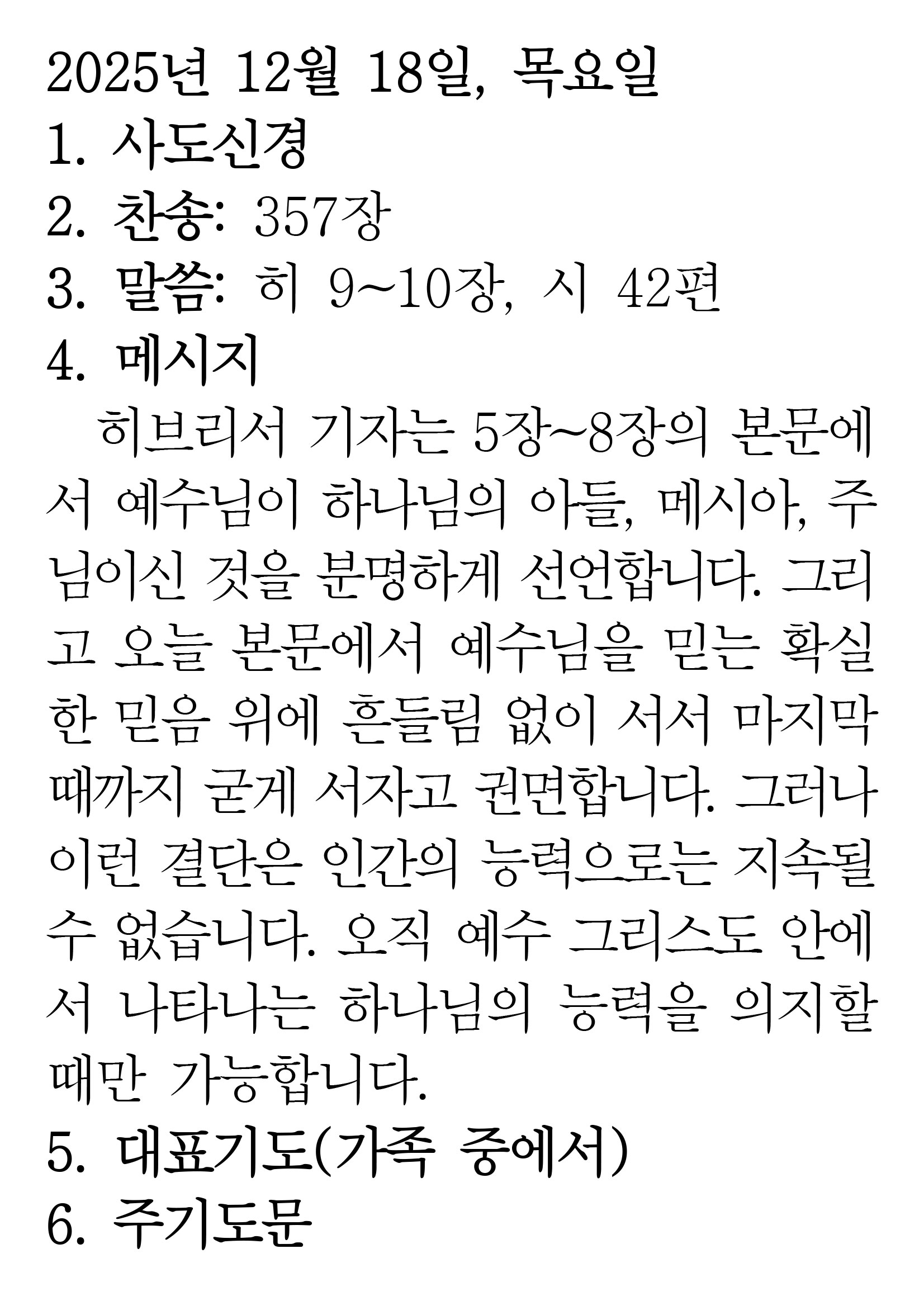 2025.12.18 (히브리서 9-10 시편 42편) 장석교회 0 2025.12.17 22:36 https://www.youtube.com/watch?v=MfUehLBH7tg + 0