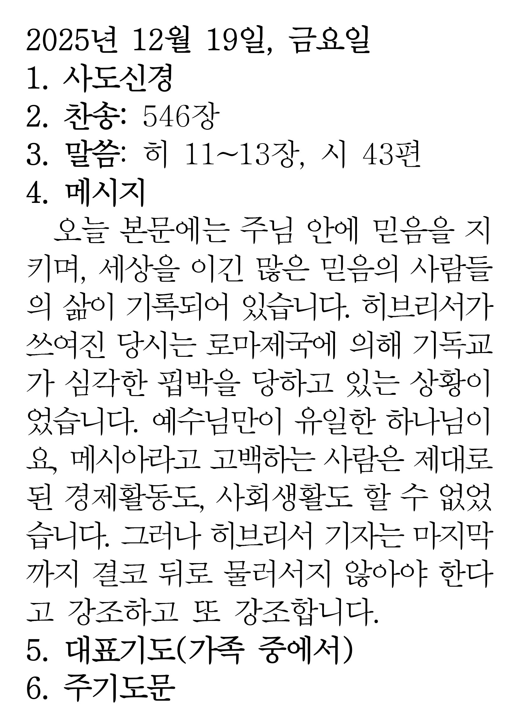 2025.12.19 (히브리서 11-13 시편 43편) 장석교회 0 2025.12.18 23:21 https://www.youtube.com/watch?v=RvmVn6WgCWs + 0