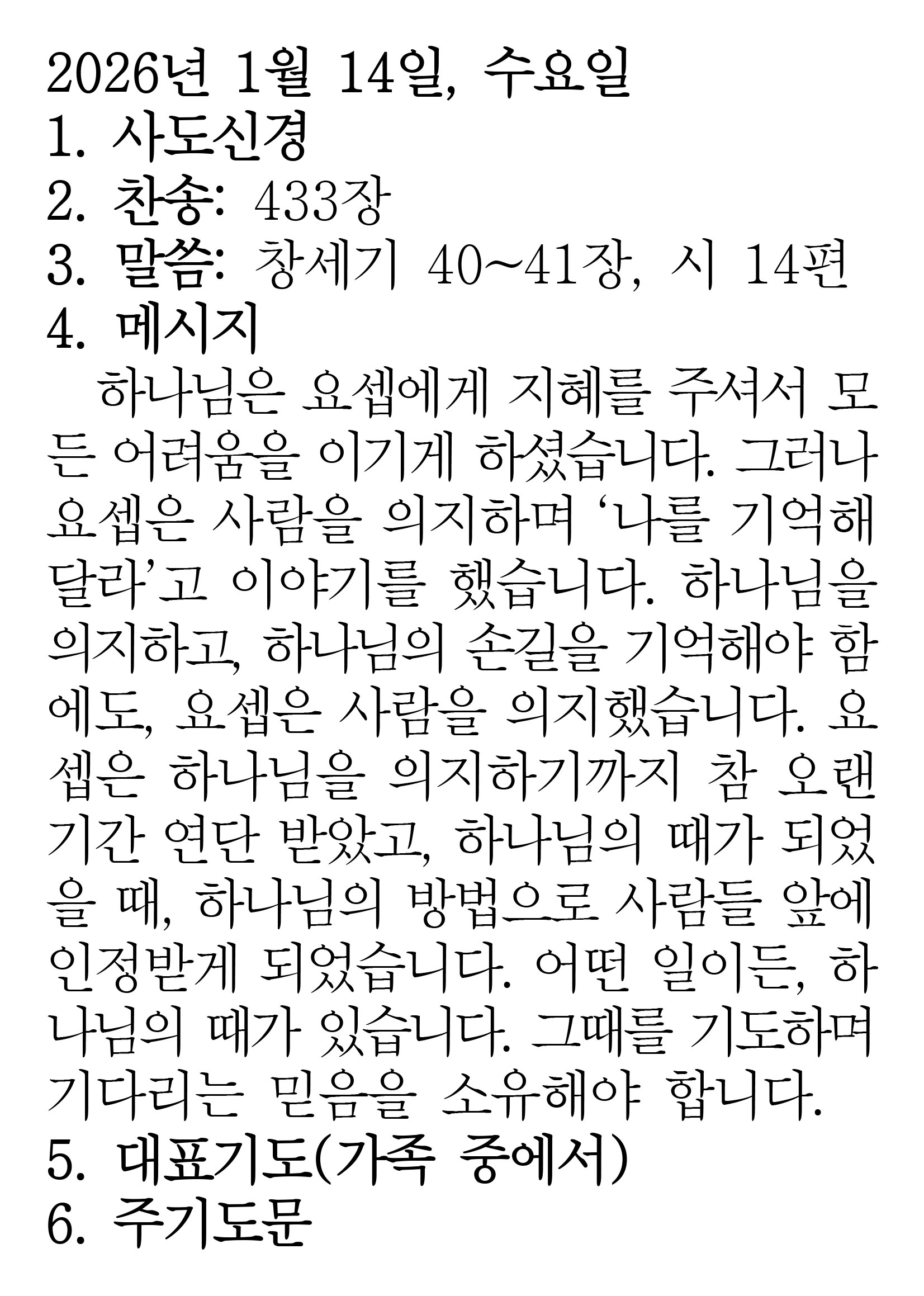 2026.1.14 (창세기 40-41 시편 14편)
