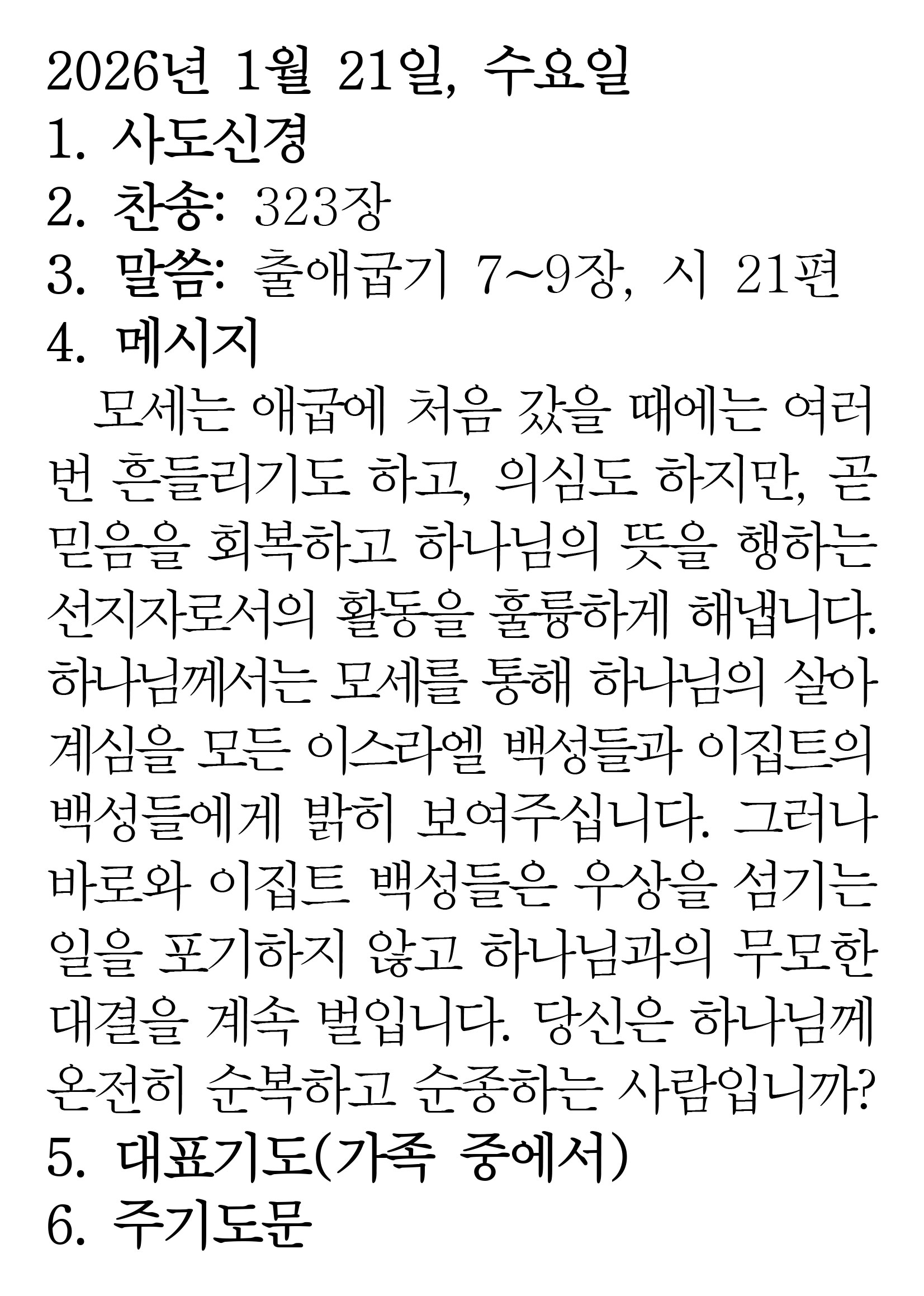 2026.1.21 (출애굽기 7-9 시편 21편)