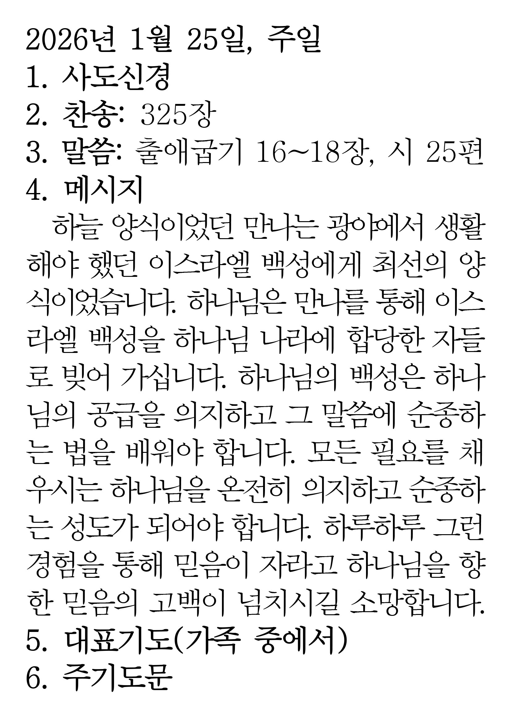2026.1.25 (출애굽기 16-18 시편 25편)