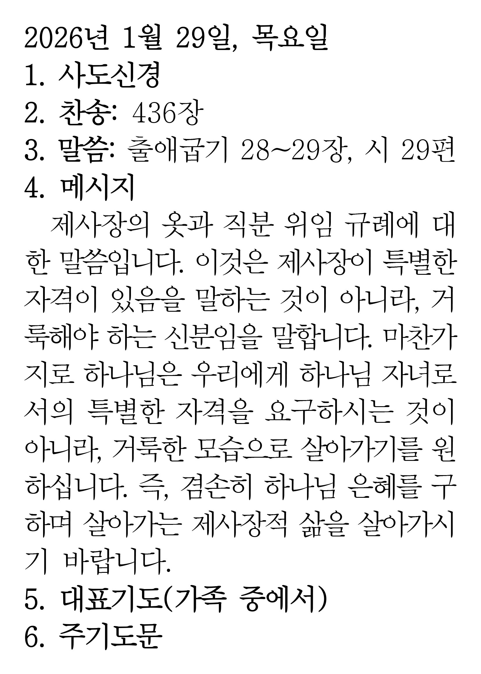 2026.1.29 (출애굽기 28-29 시편 29편)