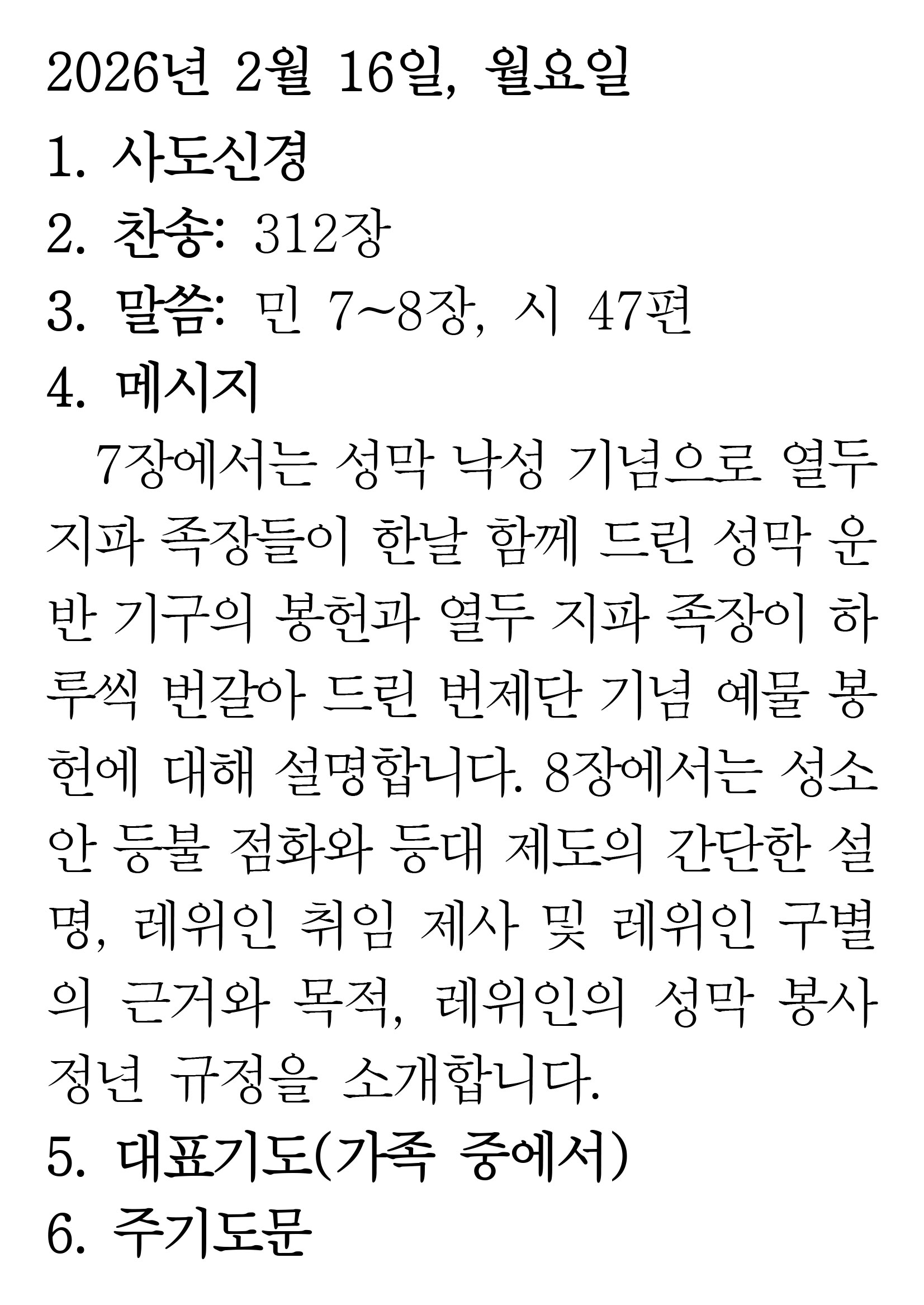 2026.2.16 (민수기 7-8 시편 47편)