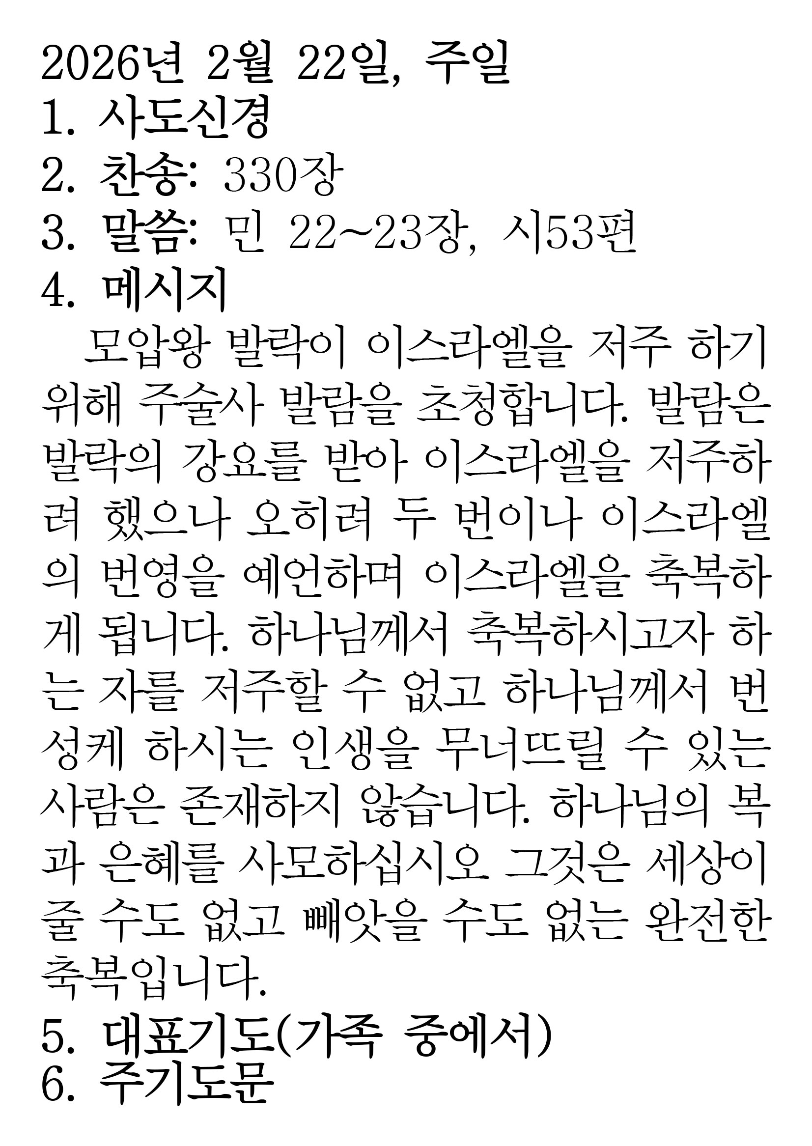 2026.2.22 (민수기 22-23 시편 53편)
