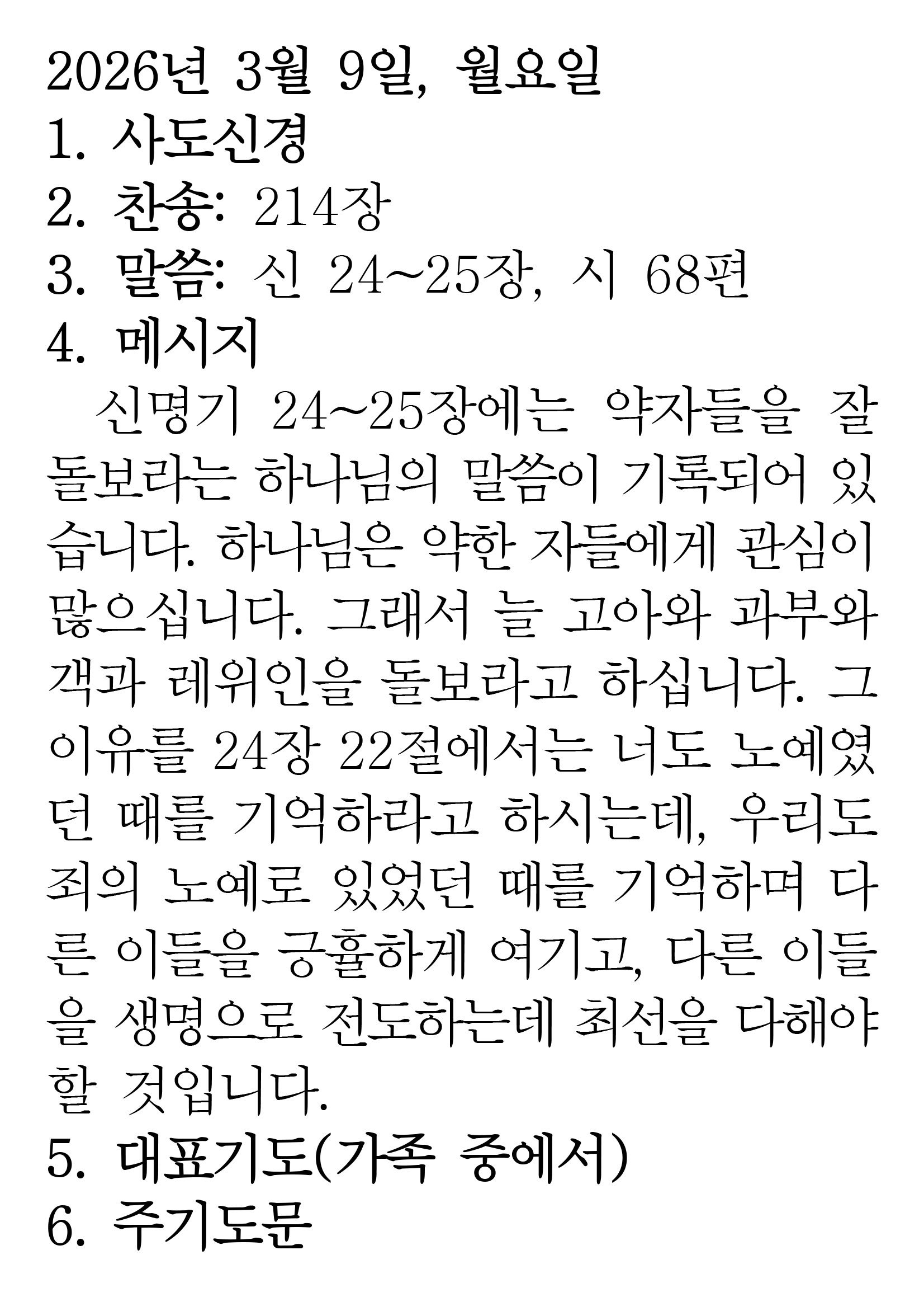 2026.3.9 (신명기 24-25 시편 68편) 장석교회 0 03.08 23:45 https://www.youtube.com/watch?v=QWH1zA6oo-8&list=PLR8YZyi4tITL4u0I_8Br… + 0