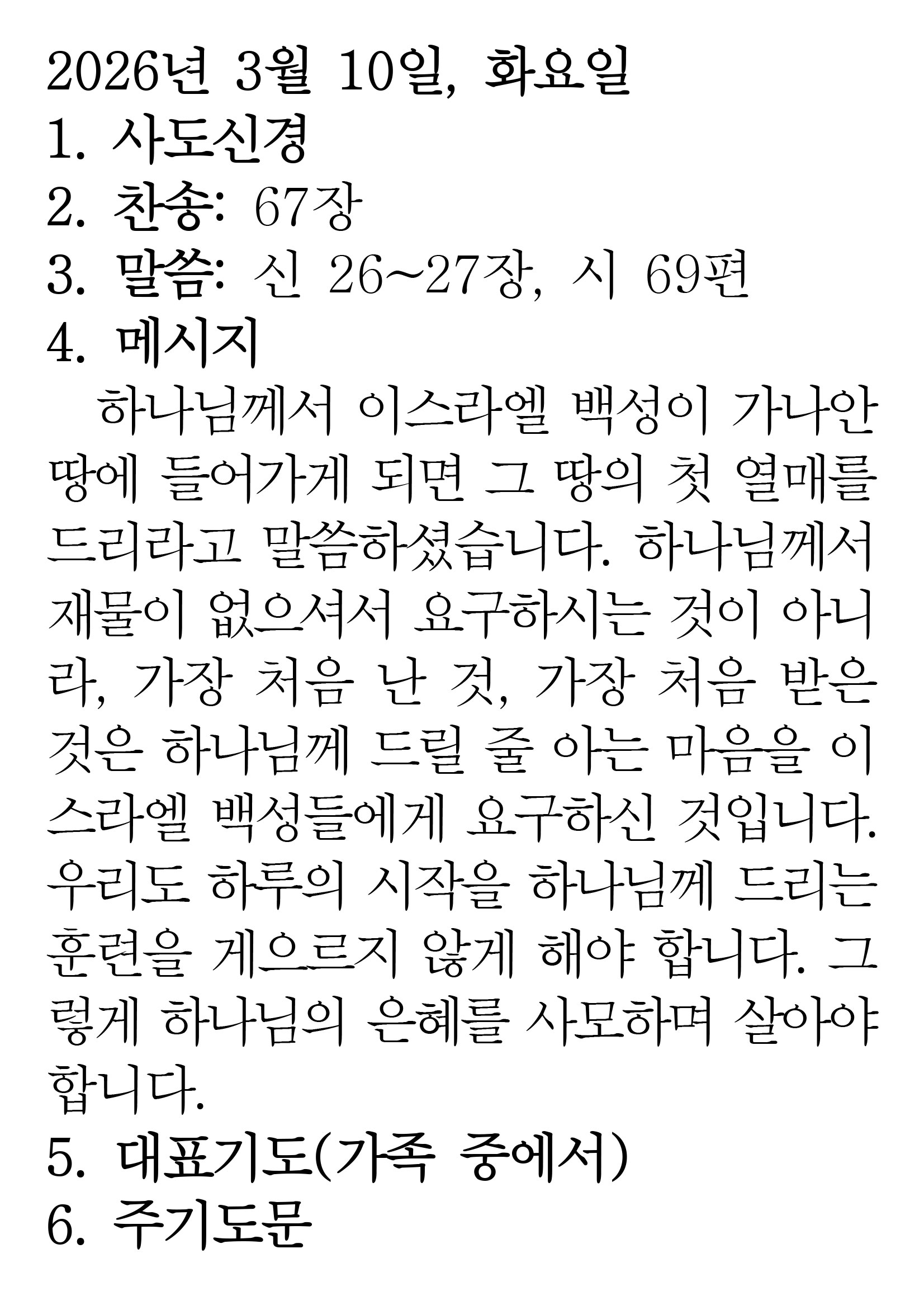 2026.3.10 (신명기 26-27 시편 69편) 장석교회 0 03.09 23:05 https://www.youtube.com/watch?v=SODe0Rs5Aws&list=PLR8YZyi4tITL4u0I_8Br… + 0
