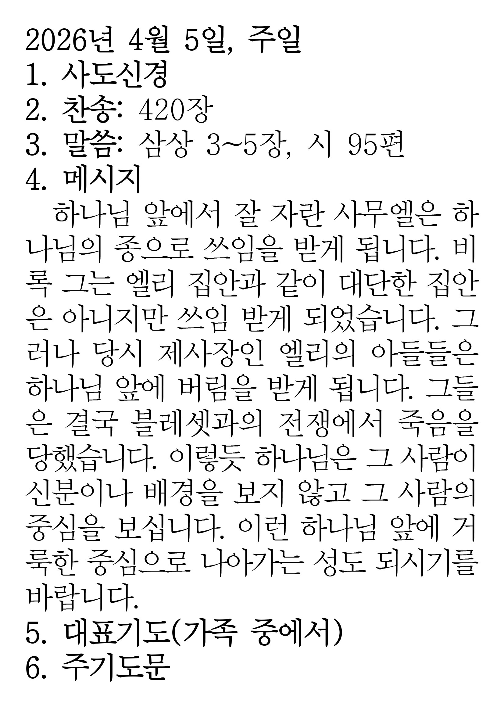 2026.4.5 (사무엘상 3-5 시편 95편) 장석교회 0 04.05 00:16 https://www.youtube.com/watch?v=oA1B3arMmec&list=PLR8YZyi4tITKVkdUpDWF… + 0