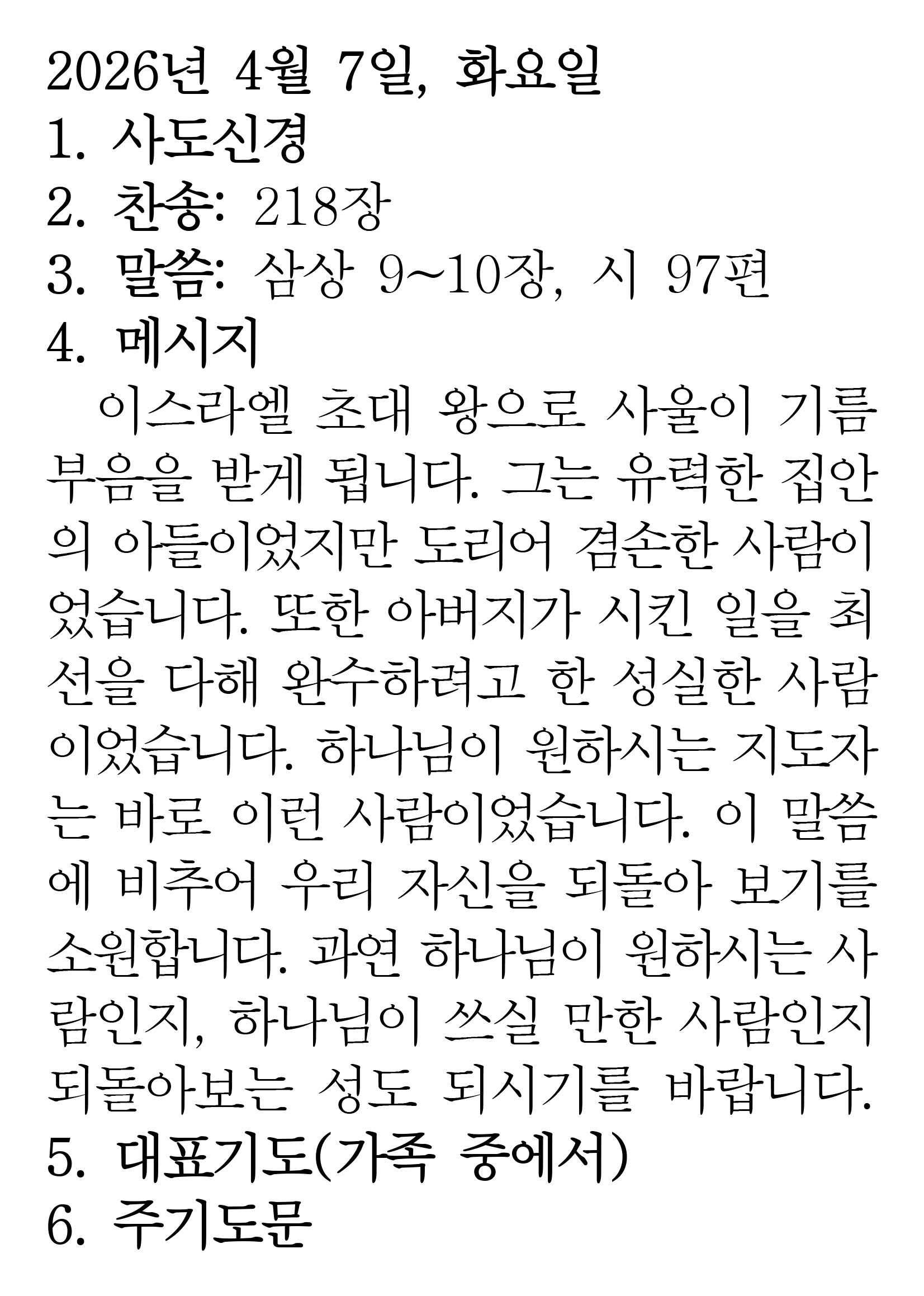 2026.4.7 (사무엘상 9-10 시편 97편) 장석교회 0 04.06 23:20 https://www.youtube.com/watch?v=GTx-0mun46c&list=PLR8YZyi4tITKVkdUpDWF… + 0